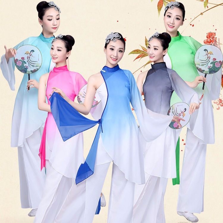 Left Hand Refers To The Moon Classical Dance Performance Clothes Adult Female Fa左手指月古典舞蹈演出服成人女扇子舞伞舞飘逸中国风水墨渐变套装