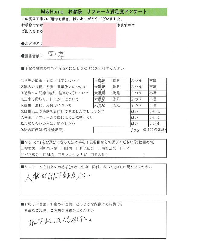 お客様の声 リフォーム リノベーション 新築住宅は名古屋市の安江工務店で